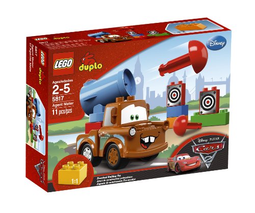 | 1 of 1 people found the following review helpful By Sunny (OC, California) - See all my reviews = Durability: Amazon Verified Purchase This review is from: LEGO Cars Agent Mater 5817 (Toy) My daughter got this for her 3rd birthday. She plays with this EVERY SINGLE DAY.It's her first Duplo and she LOVES Mater. Sure it doesn't have a lot of pieces but she's not after how many pieces there are. She's after the interactive part. The cannon is amazing. It holds up to time after time of reuse. She loves to insert the cannonballs and watch it fire and shoot the target. GREAT cause and effect for a toddler, boy or girl. It's also a wonderful toy to teach hand-eye coordination. She has to insert the cannonball perfectly in order for it to snap. She has to place the targets within range. She has to align the cannon just right so it will hit the target. It's incredibly educational as it teaches her the laws of physics at such a young age. She also has to assemble Mater correctly so the cannon doesn't tip over. If it's too front heavy or back heavy she won't be able to press the cannon button. She has to assemble & align the Duplo... Read more By = Durability: Amazon Verified Purchase This review is from: LEGO Cars Agent Mater 5817 (Toy) Gift to a four year old: It relates to a beloved movie, it is simple, is not expensive, and it will likely be found in play for years as it gets passed down. = Durability: Amazon Verified Purchase This review is from: LEGO Cars Agent Mater 5817 (Toy) We purchased this Cars 2 Agent Mater toy for our 3 year old boy. He can operate the toy and enjoys building different structures with the blocks included. I think this was a good buy. There are two "missiles" included along with two "target" blocks. These are unique and an interesting addition to other duplo legos. |
