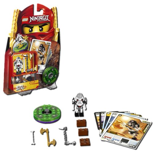 Defeat the Spinjitzu master with the fierce powers of General Kruncha in LEGO Kruncha. Use one or all the three weapons, double axe, shoge and bone, to launch an attack on his enemies. Spin the LEGO Kruncha on his earth optic spinner to bring victory to the Skeleton army. Turn the spinner in different styles using the LEGO bricks and use the four battle cards to change the outcome of the battle.