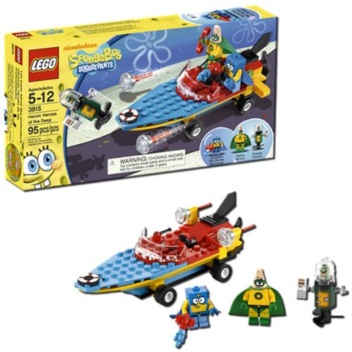 | 7 of 8 people found the following review helpful By = Durability: Amazon Verified Purchase This review is from: LEGO SpongeBob Heroic Heroes of the Deep 3815 (Toy) Seven year old grandson had requested this toy as a reward choice. He couldn'twait until it came marking the calendar as to the date of arrival. It came early and he was so impressed. He immediately sat down and following the directions put it together. He has played with it everyday since. However, the small piece of Plankton disappeared and hasn't been found yet. The Lego toys encourage children to "READ" directions and rewards them with a toy to play with....very educational. 8 of 10 people found the following review helpful By Bobby Reid (Utah) - See all my reviews = Durability: Amazon Verified Purchase This review is from: LEGO SpongeBob Heroic Heroes of the Deep 3815 (Toy) Lego discontinued the Spongebob sets a few years ago, making Spongebob Legos very expensive to buy (if you could even find them). Luckily, they decided to bring them back. This set is a great value as you get three mini figures and vehicle for $15. The set has great play value and is very durable. If you like Spongebob and Legos, then this is a no brainer!! Thanks Lego for another great set. 3 of 4 people found the following review helpful By Jersey Reader "JR" (Sunnyvale, CA) - See all my reviews = Durability: This review is from: LEGO SpongeBob Heroic Heroes of the Deep 3815 (Toy) Bought this to go with the Glove World set (we're slowly building a Spongebob community) and love it, I love the retro feel of the design, really 60s Batman-ish.Easy to put together although I ended up doing it myself. Lots of fun. |