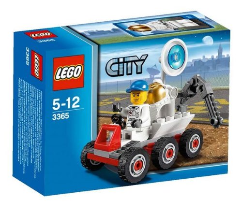 | 7 of 7 people found the following review helpful By Brick (Universe, Milky Way, Solar System, Earth) - See all my reviews = Durability: This review is from: LEGO Space Moon Buggy 3365 (Toy) Buggy:Three wheels, a super cool arm with a blade for digging, space to put stuff, a sattelite dish (with a con: it can't tilt), and its the exellent size for take-along. But it doesn't have a camera. You can add one yourself--switch the sattelite dish to the other side, attach a camera to one of those arm pieces (not minifig arm! :)) and attach that to one of those 2x0 with an "arm" sticking out the side. Or if you don't have the arm that connects to the camera you can connect the camera to the "arm" in the 2x0 (is 2x0 right?!) by the "holes" on the bottom of the cam. Minifig: The astronaut minifig is probably my favorite one. Terrific face for an astronaut, includes a gold helmet. Overall: Exellent take-along or decoration. Anyone can build this. Cheap, but a little less (like a couple of dollars) would be perfect for it. Pros: Astronaut Minifig 6-wheeled Moon Buggy Gold Helmet!! Moon Rock Cutter Radar thing Instructions... Read more 6 of 7 people found the following review helpful By Darwin Leung (Cheshire, CT United States) - See all my reviews = Durability: This review is from: LEGO Space Moon Buggy 3365 (Toy) I brought this for my son because he recently visited the Goddard Space Center in Baltimore and became interested in space travel. I brought this set because I thought that he would like creating his own adventures in space and he has spent many hours playing with it. My son always pretends that the buggy goes to Mars and finds aliens. This set includes one minifigure and 37 pieces for $5. This makes the price-per-piece ratio of about $0.13. The drill mechanism at the end of the buggy is very cool. 8 of 10 people found the following review helpful By = Durability: This review is from: LEGO Space Moon Buggy 3365 (Toy) It's good to see the Lego City line branching out to include some space-related sets. I bought this Space Moon Buggy set for my son as an inexpensive way to see how interested he was in the new sets. It's a small set that includes an astronaut minifigure and a small vehicle.Complexity: There are only 37 pieces in this set, so it wasn't too difficult for my 5-year old to put together. I had to help once or twice, but he had the minifigure and buggy assembled in roughly 5-10 minutes. Playability: It may be a small set, but it's a fun one too. So far the astronaut has been played with a lot more than the buggy, and has already faced off against some of the scarier alien minifigures from other Lego sets. This simple little set turned out to be a big hit. It's a fun addition to the Lego City line, and I could see it making a great stocking stuffer-type gift as well. |
